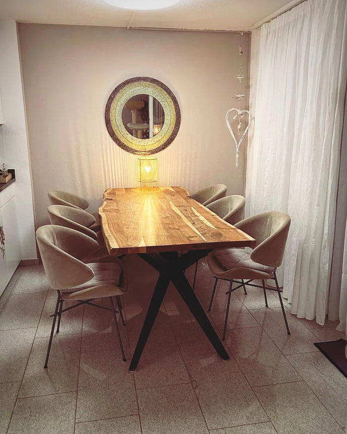 Ein besonderes Highlight im Sortiment von Wild Mango Designs sind die Tischplatten mit Baumkante. Diese einzigartigen Tischplatten werden aus einem einzigen Stück Holz gefertigt und behalten die natürliche Form und Struktur des Baumstamms bei. Jede Tischplatte ist somit ein Unikat, das die Schönheit und Individualität der Natur in Ihr Zuhause bringt. Die Baumkante verleiht dem Tisch eine rustikale und gleichzeitig moderne Optik, die perfekt in jedes Interieur passt. Ein Tisch mit Baumkante ist immer ein besonderer Blickfang und ein Statement für Naturliebhaber und Designenthusiasten gleichermaßen.